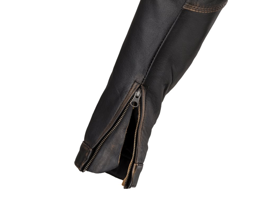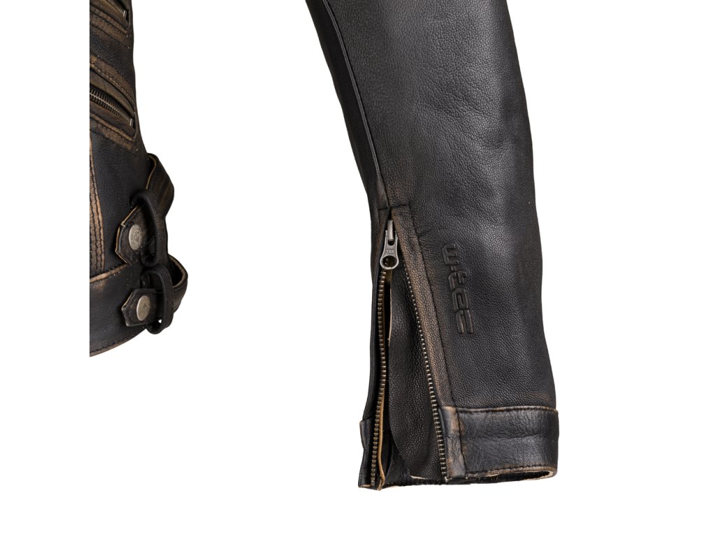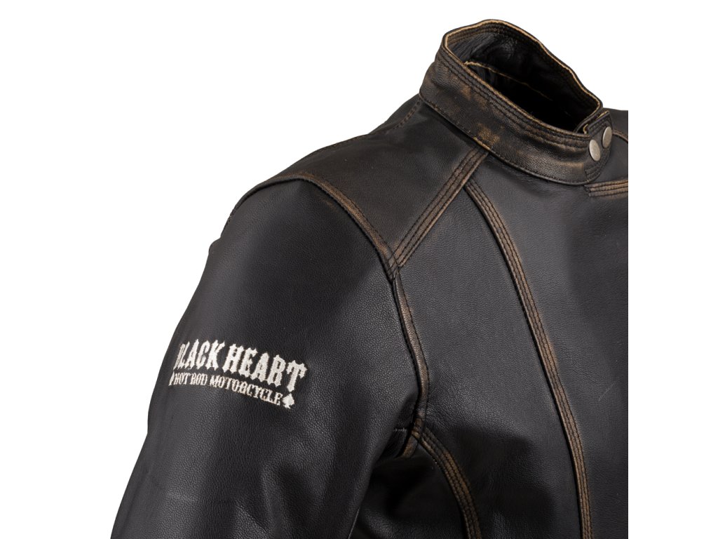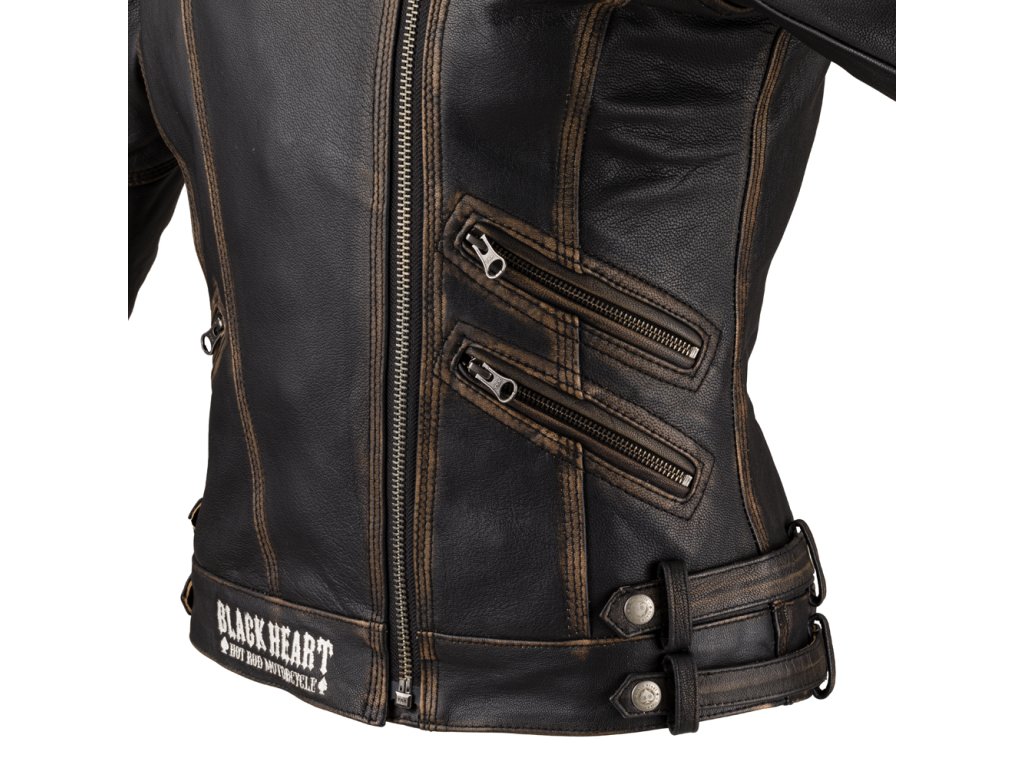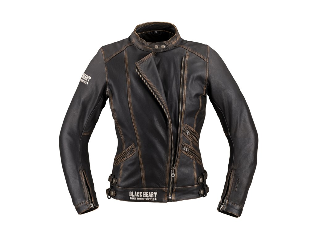 Dámská kožená moto bunda W-TEC Black Heart Lizza dominuje klasickým střihem takzvaného "křiváku". Výrazným prvkem je pro tento typ bundy totiž typické hlavní zapínání, které není umístěno do jejího středu. Vkusný vzhled ještě doplňuje trendy obnošeným stylem. Její předností je dále také krásně měkká a poddajná kozí kůže, takže nošení této bundy bude jedna radost. Muziku tady navíc tvrdí šité nápisy brandu Black Heart.