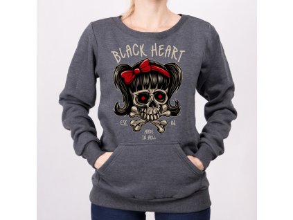 Retail price:69 € Dámská mikina značky BLACK HEART dead pin up. Mikina je volného střihu klokanka bez kapuce z příjemného materiálu o 380G
