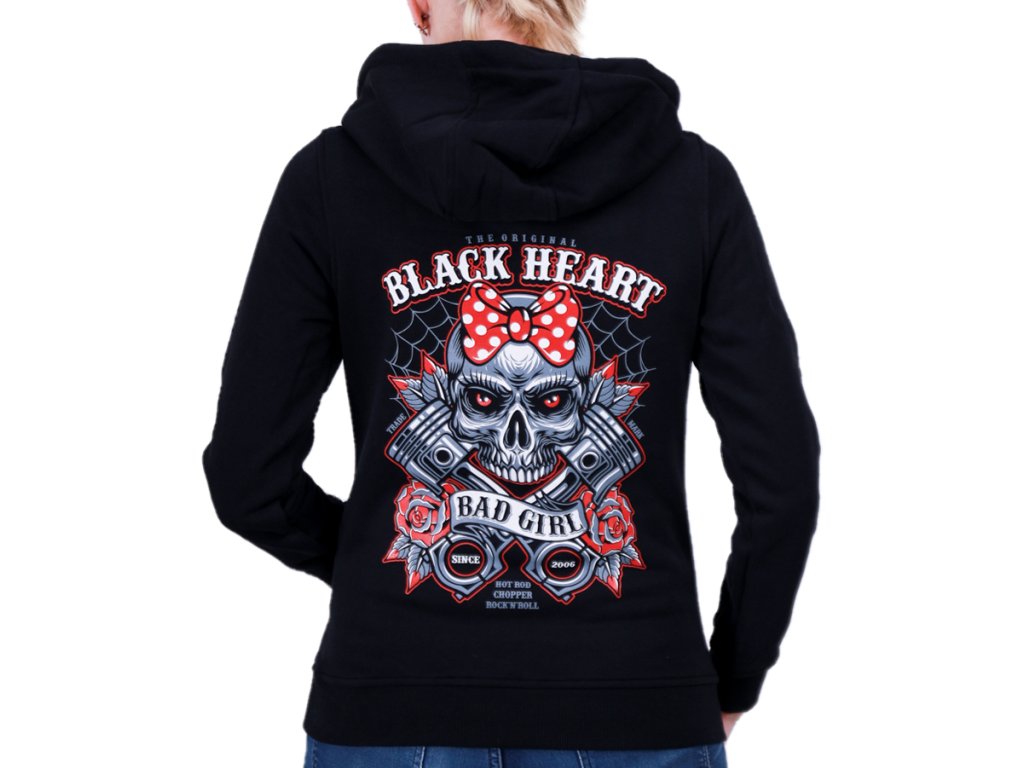 Dámská mikina značky BLACK HEART. Mikina disponuje celorozepínacím zipem, oboustranným potiskem, kapucí, bočními kapsami.