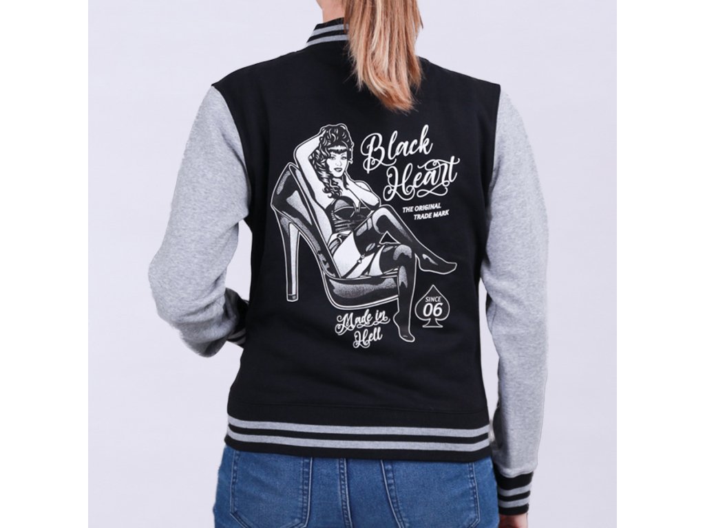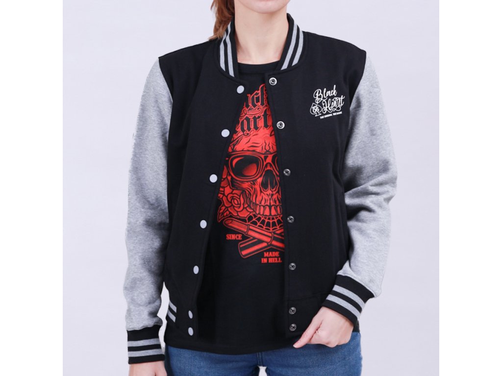Dámská mikina značky BLACK HEART SKULL BITCH. Mikina na cvoky bez kapuce z příjemného materiálu o 380G Klasická baseballová mikina do pasu tak zvaná pasovka z příjemného materiálu , rozhodně by neměla chybět ve vašem šatníku