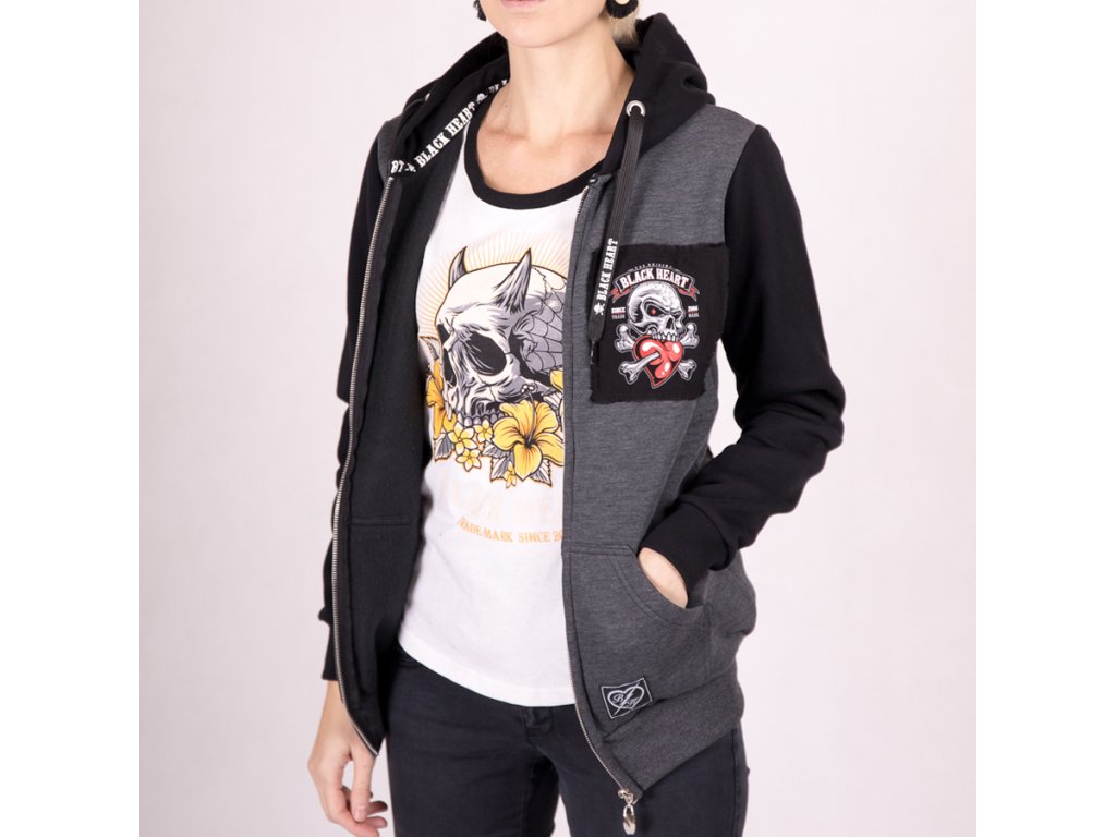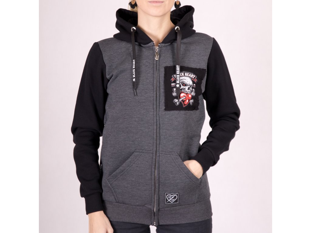 Dámská mikina značky BLACK HEART. Mikina disponuje celorozepínacím zipem, oboustranným potiskem, kapucí, bočními kapsami.
