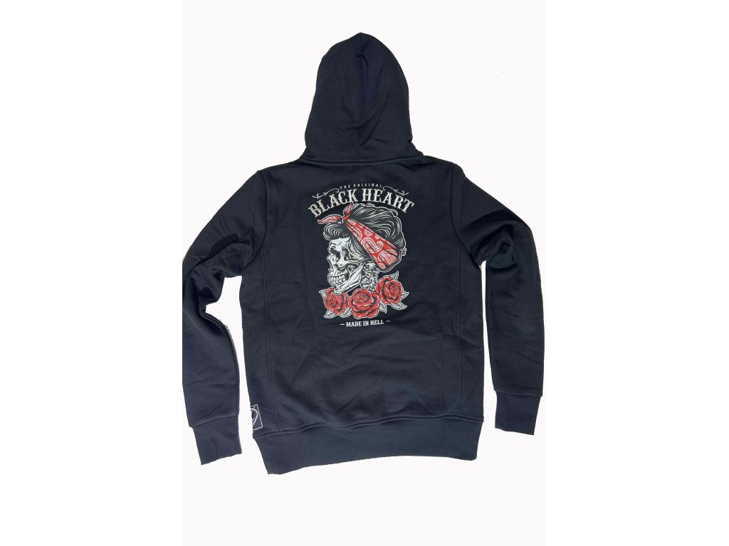 Mikina BLACK HEART PIN UP SKULL ztělesňuje opravdový biker styl s ženským šmrncem.