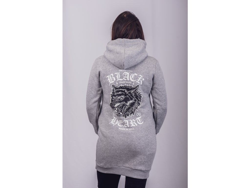 Dámská Mikina BLACK HEART WOLF LONG GREY