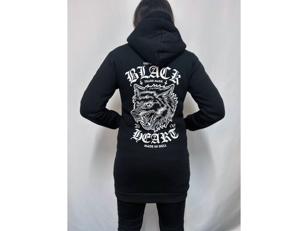 Dámská mikina BLACK HEART. Tato dlouhá mikina s kapucí z VELICE PŘÍJEMNÉHO MATERIÁLU je ideální pro chladnější počasí , má dvě přední kapsy, kapuci se stahovací šňůrkou a...