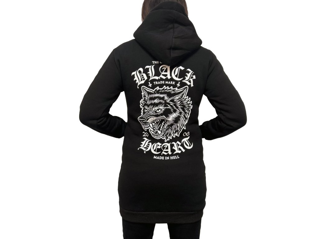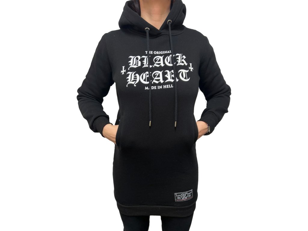 Dámská mikina BLACK HEART. Tato dlouhá mikina s kapucí z VELICE PŘÍJEMNÉHO MATERIÁLU je ideální pro chladnější počasí , má dvě přední kapsy, kapuci se stahovací šňůrkou a žebrovaný lem a manžety. Mikina má také oboustranný potisk. Materiál: 80 % bavlna, 20 % polyester.