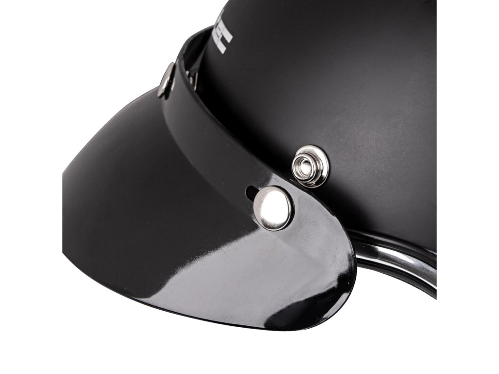 Moto přilba W-TEC YM-629 je helma v retro stylu, která je ideální pro jízdu na chopperech a motocyklech typu Harley Davidson, ale bez námitek jí lze používat i na skútrech či pomalejších motocyklech. K tomu je pro maximální komfort opatřena měkkým, velmi pohodlným polstrováním, jehož lícnice jsou vyjímatelné a pratelné. Z hlediska praktičnosti potěší zadní poutko pro uchycení a zajištění motocyklových brýlí nebo snadné zapínání na rychloupínací přezku. Efektní vintage zpracování pak podtrhují výrazné chromové lemy.