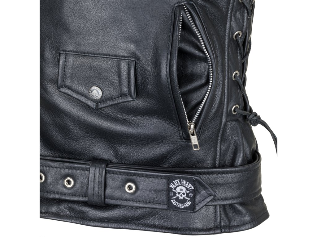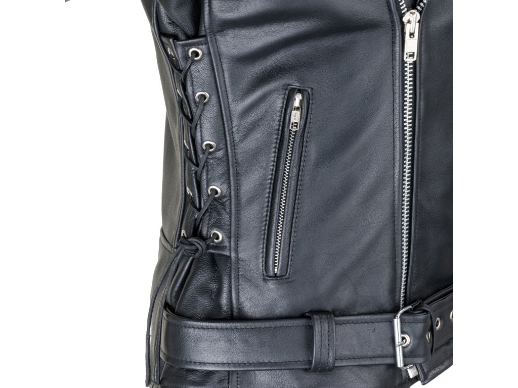 Bunda jako taková je vyrobena z měkké buvolí kůže Buffalo a z vnitřní strany disponuje zateplenou podšívkou. Praktičnost je podpořena čtyřmi předními kapsami na různé drobnosti a další vybavení. Doplněny jsou ještě o další dvě na vnitřní straně. Potěší i drobné detaily jako stylový límec, ozdobné šněrování na bocích nebo vkusné ramenní výložky. Elegantní, originální, ne-li vskutku až perfektní vzhled na motorce, to je kožená moto bunda W-TEC Black Heart Perfectis.
