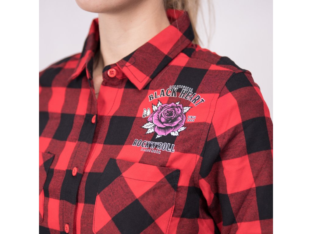 Dámská košile BLACK HEART ROCK N ROLL ROSE s dlouhým rukávem je ta správná holčičí košile a je perfektní volbou pro volný čas. Kvalitní bavlněná látka Vám poskytne maximální komfort při nošení. Skvěle se hodí k volnočasovým kalhotám a jeansům. Ukaž tedy, kam patříš. Tahle košile není žádná "naškrobená nuda"!