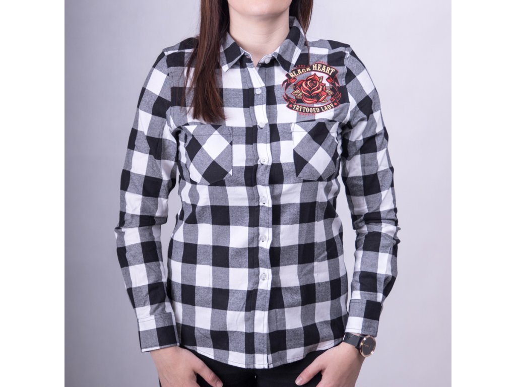 Dámská košile BLACK HEART TATTOOED LADY s dlouhým rukávem je ta správná holčičí košile a je perfektní volbou pro volný čas. Kvalitní bavlněná látka Vám poskytne maximální komfort při nošení. Skvěle se hodí k volnočasovým kalhotám a jeansům. Ukaž tedy, kam patříš. Tahle košile není žádná "naškrobená nuda"!
