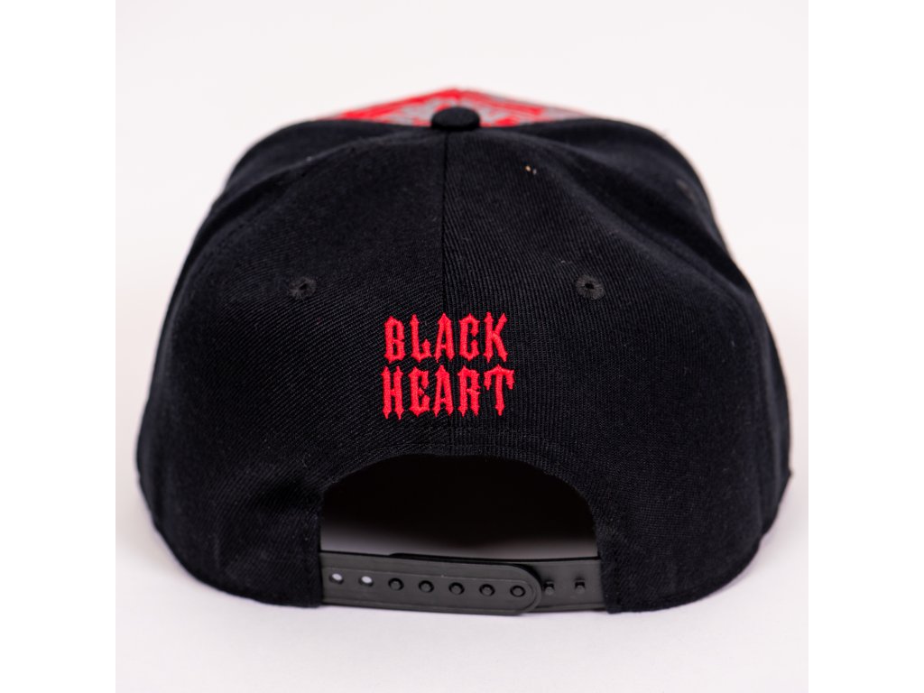 Kšiltovka BLACK HEART je skvělým módním i funkčním doplňkem pro každý den. Tento snapback skvěle doplní Váš outfit a zároveň kšilt bezpečně ochrání před slunečními paprsky. Slunce už Vás tak při letních radovánkách nebude nijak omezovat. Vyzdvižené čelo s nastavitelným obvodem jsou záruka toho, že čepice sedne opravdu každému. Kšiltovka je vyrobena z kvalitního materiálu, který zaručuje dokonalý komfort při nošení.