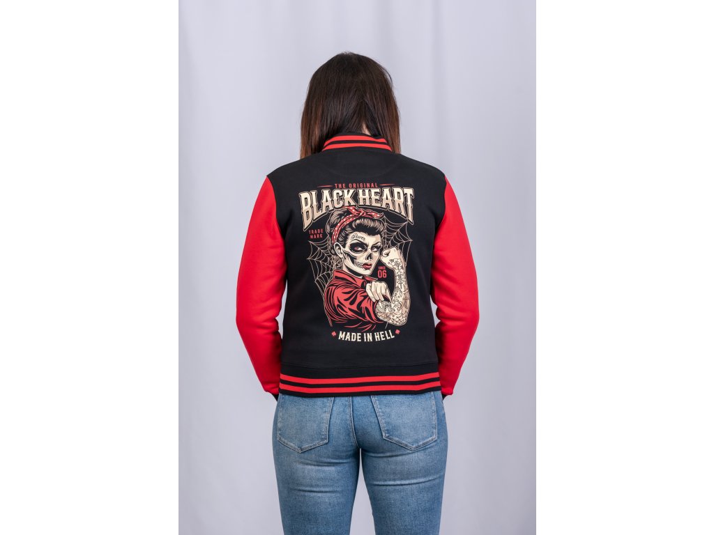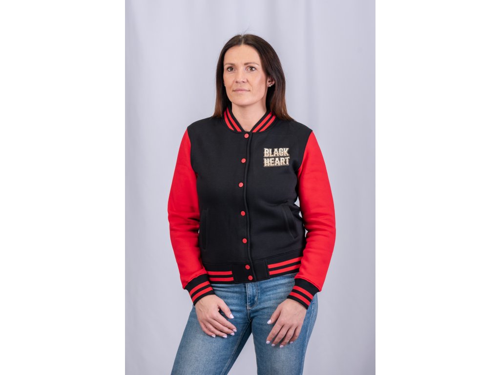 Dámská mikina značky BLACK HEART SKULL PRETTY. Mikina na cvoky bez kapuce z příjemného materiálu o 380G Klasická baseballová mikina do pasu tak zvaná pasovka z příjemného materiálu, rozhodně by neměla chybět ve vašem šatníku