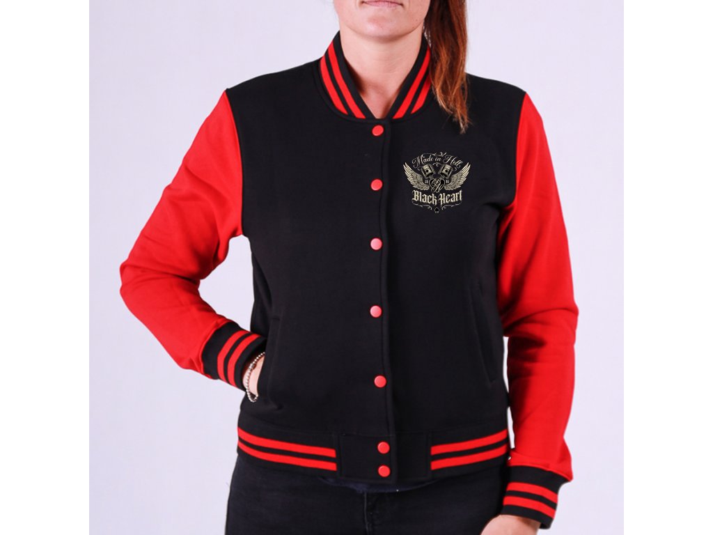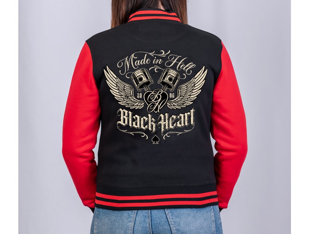 Dámská mikina značky BLACK HEART Wings. Mikina na cvoky bez kapuce z příjemného materiálu o 380G Klasická baseballová mikina do pasu tak zvaná pasovka z příjemného materiálu, rozhodně by neměla chybět ve vašem šatníku