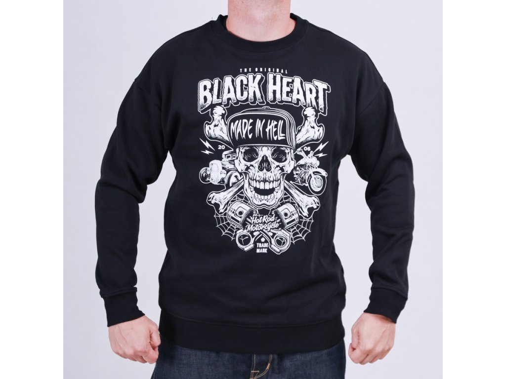 Mikina Black Heart s rovným střihem a potiskem na přední části mikiny.