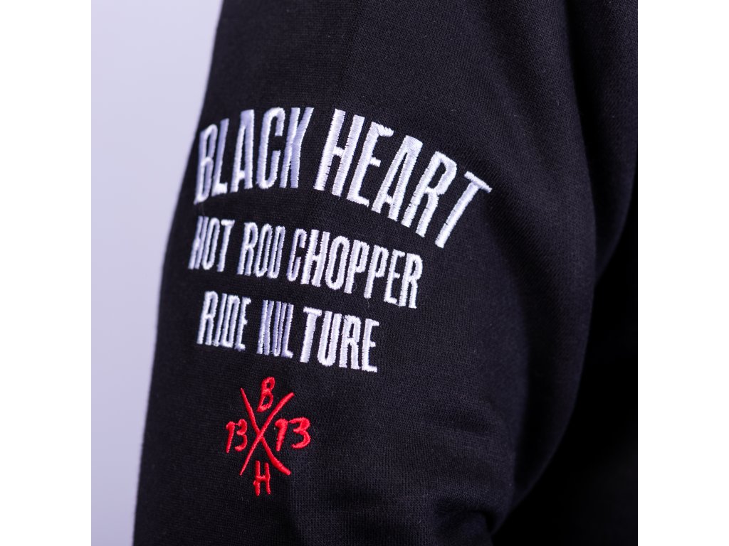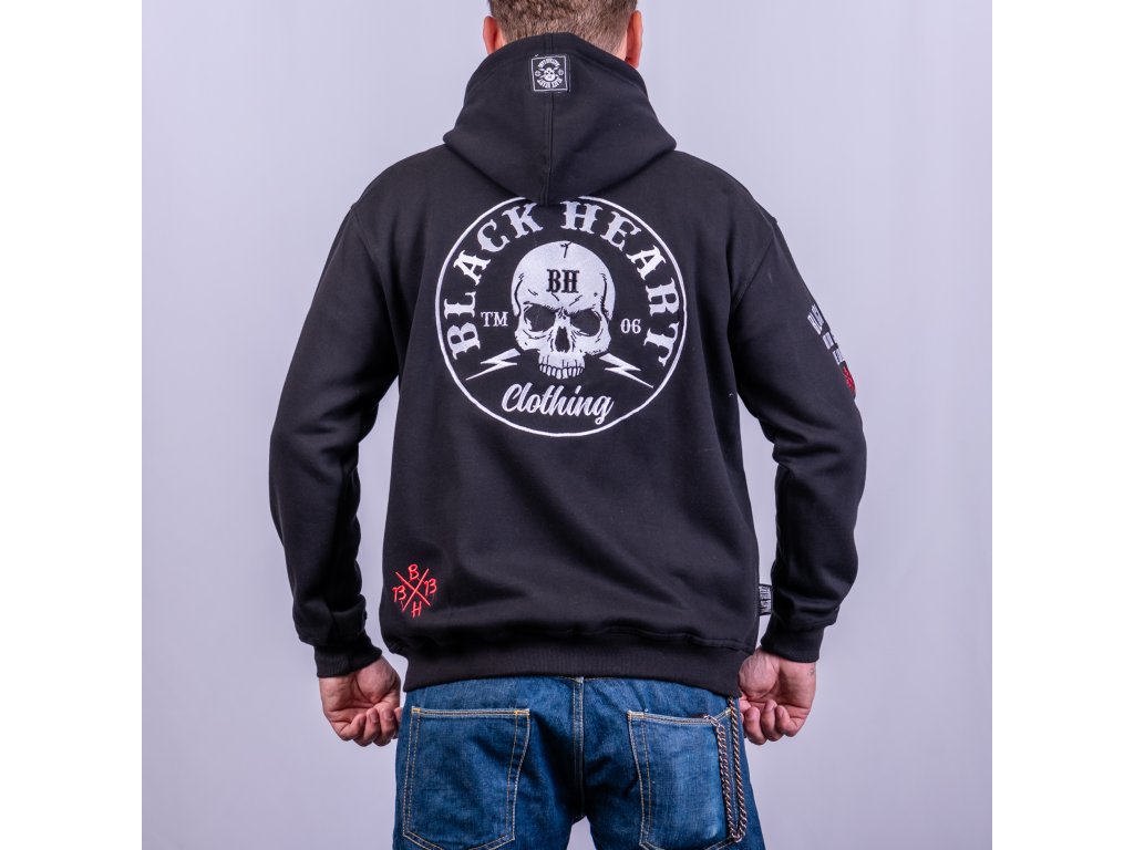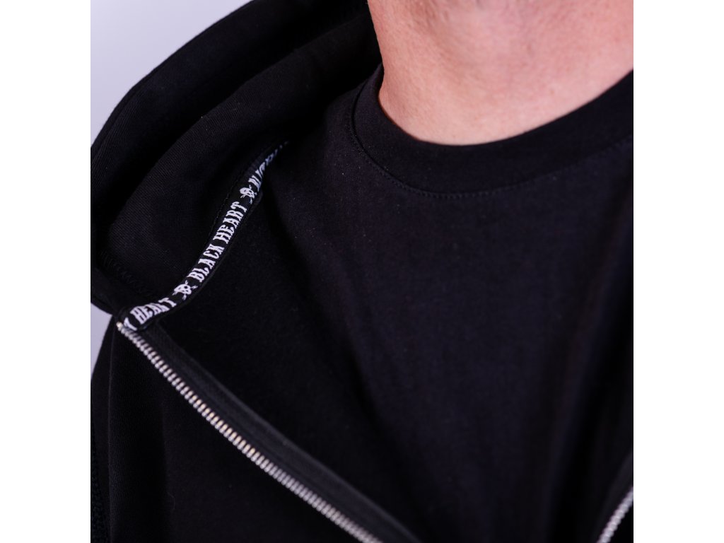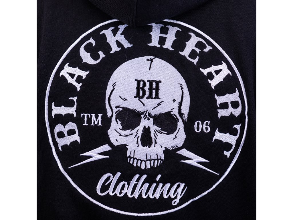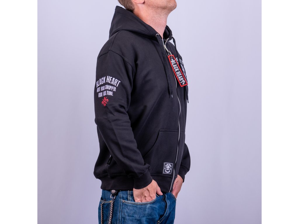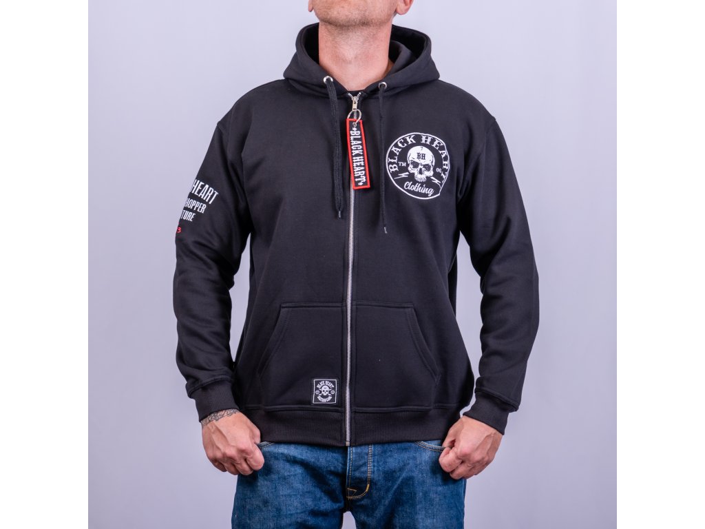 Mikina BLACK HEART s rovným střihem je vybavena dvěma kapsami na břiše a v přední části je opatřena celorozepínacím zipem. V neposlední řadě disponuje kapucí, kterou lze velikostně upravit pomocí tkaniček. Mikina má na zádech a prsu vyšité logo skull BH , další propracovaná výšivka je na rukávu.