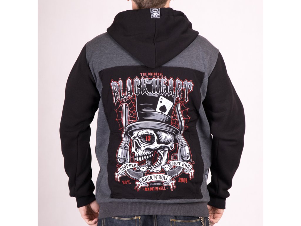 Retail price:80 € Pánská Mikina BLACK HEART WRECH HEAD s delším rovným střihem je vybavena dvěma kapsami na břiše a v přední části je opatřena celorozepínacím zipem....