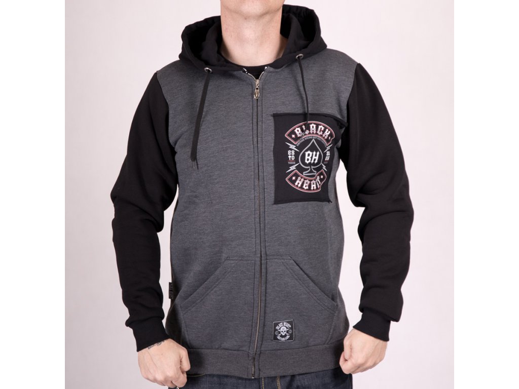 Retail price:80 € Pánská Mikina BLACK HEART WRECH HEAD s delším rovným střihem je vybavena dvěma kapsami na břiše a v přední části je opatřena celorozepínacím zipem....