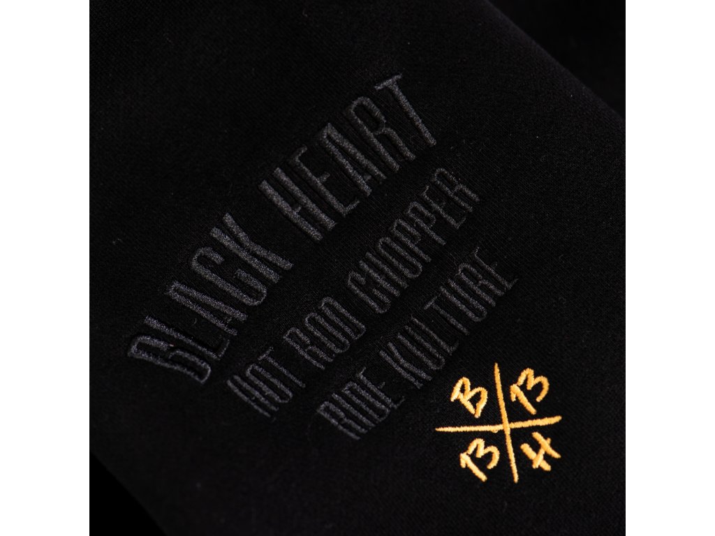 Tkané štítky BLACK HEART – na kapuci, kapse, v bočním švu i na šňůrkách