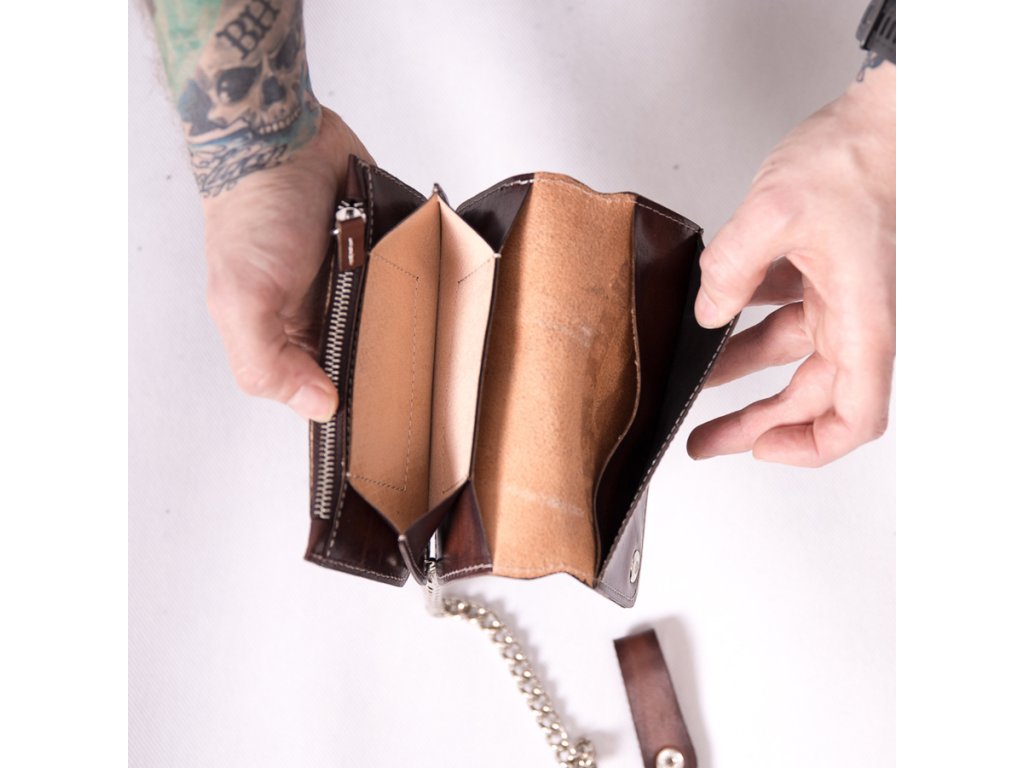 Peněženka je upravena patinováním, která jí propůjčuje dokonalý vzhled i po letech používání. Díky vosku je také odolná proti vodě, takže v ní budou vaše peníze v bezpečí.Motiv je tvořen reliefní ražbou.