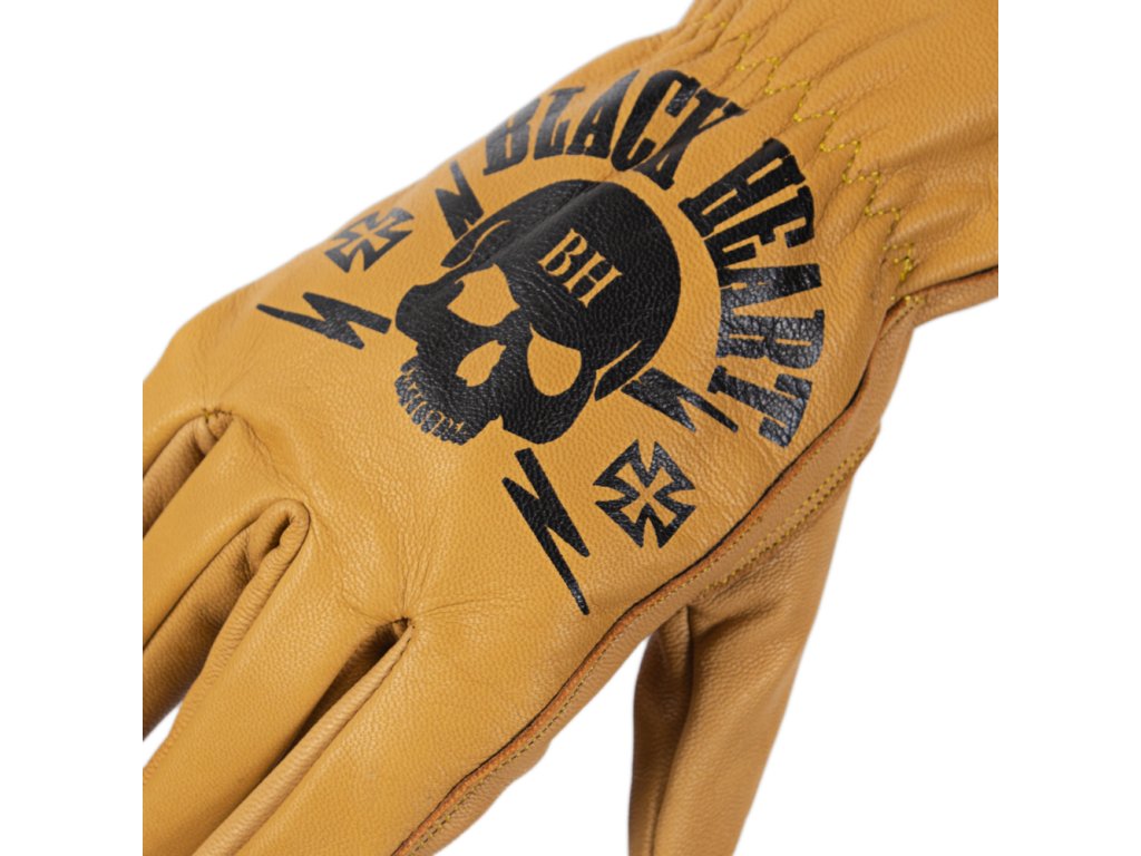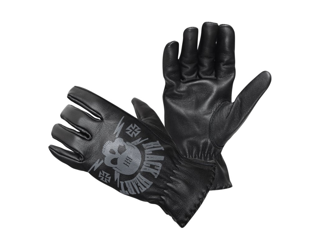 Kožené moto rukavice Black Heart Skull Gloves - černá
