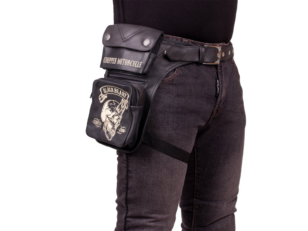 Stehenní kapsa W-TEC Black Heart Devil Skull Black Leather