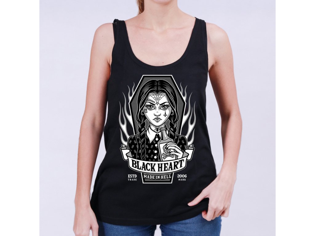 Dámské tílko BLACK HEART má pohodlný a velmi slušivý přiléhavý střih.Dámské tílko z lehkého materiálu, velmi příjemné na sportovní aktivity. Tílko má boxerský střih zad. Spodní okraj tílka je zaoblený