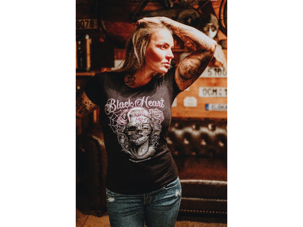 Dámské triko BLACK HEART je ušité z příjemného bavlněného materiálu, prezentuje se decentním střihem respektujícím tvar ženského těla, takže se "nosí úplně samo" a nabízí tak perfektní volbu pro volný čas. Díky kvalitnímu potisku s rebelskými motivy však nejlépe sedne k motorkářskému stylu. Ukaž tedy, k jaké partičce patříš.