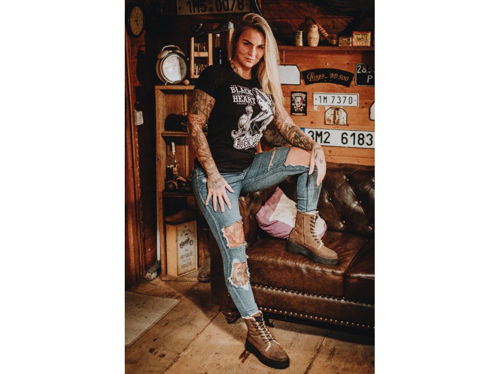 Dámské triko BLACK HEART ARIELLA je ušité z příjemného bavlněného materiálu, prezentuje se decentním střihem respektujícím tvar ženského těla, takže se "nosí úplně samo" a nabízí tak perfektní volbu pro volný čas. Díky kvalitnímu potisku s rebelskými motivy však nejlépe sedne k motorkářskému stylu. Ukaž tedy, k jaké partičce patříš.