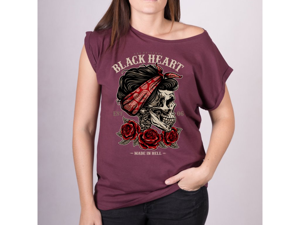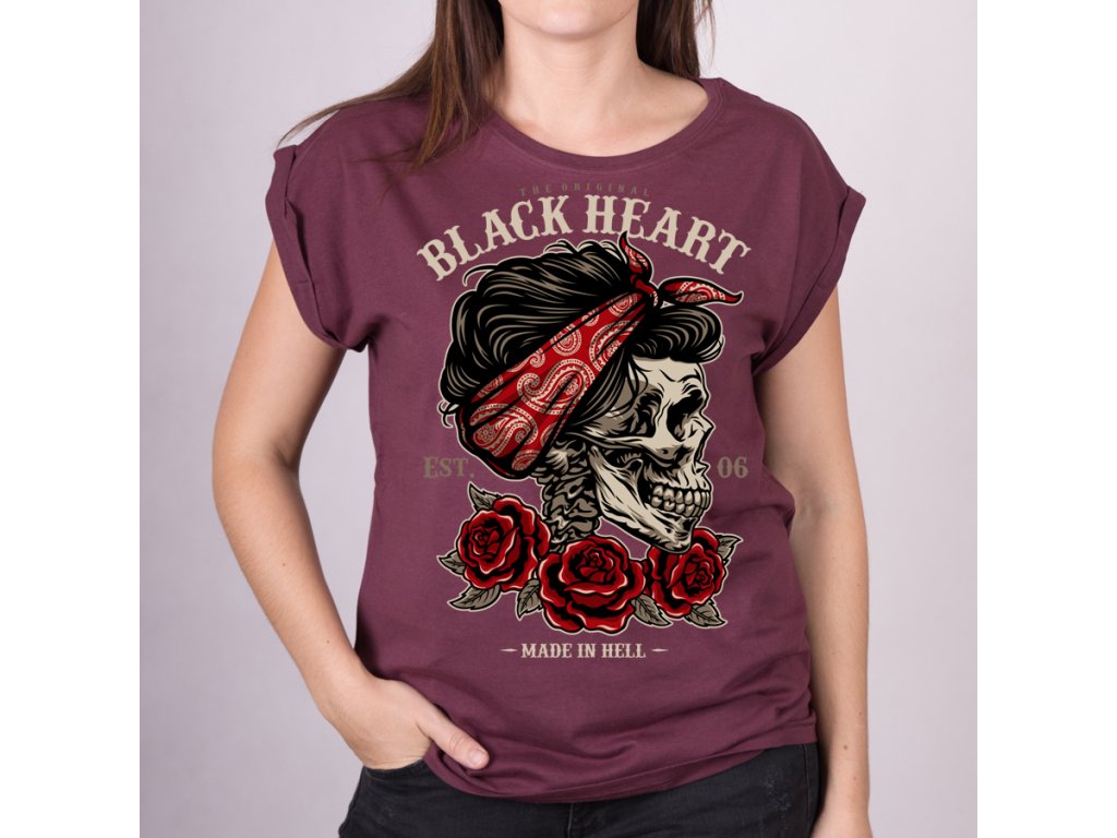 Dámské Triko BLACK HEART PIN UP SKULL EXT