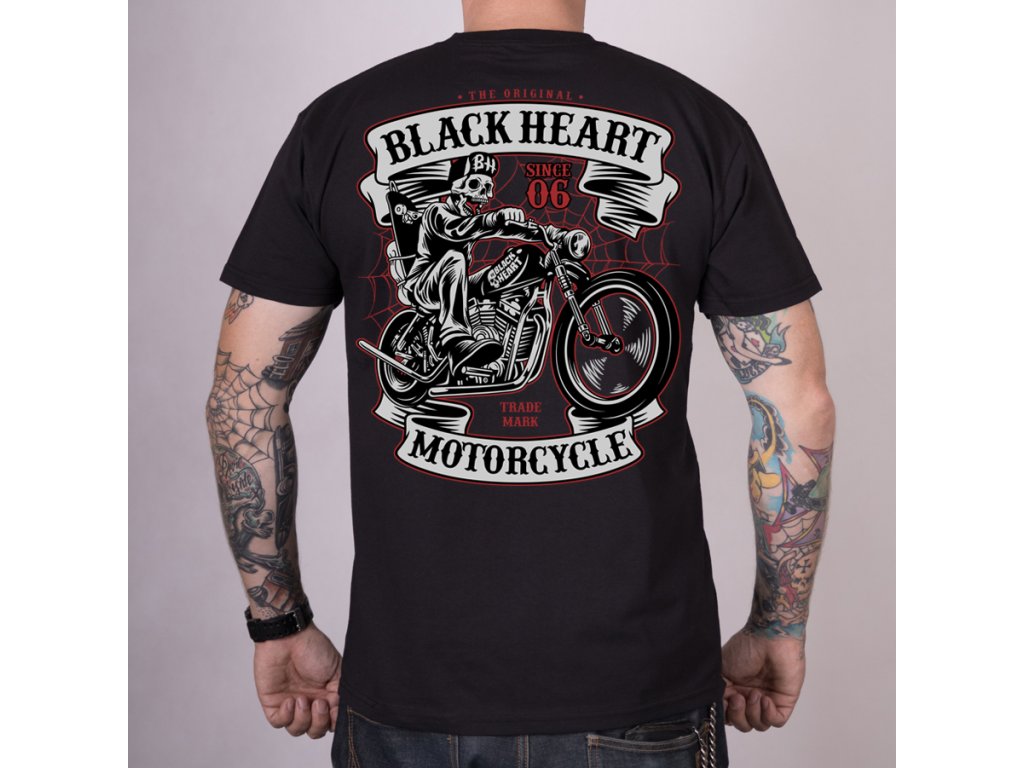 MOTORKÁŘSKÉ Tričko BLACK HEART SKELETON CHOPPER 2 jakost