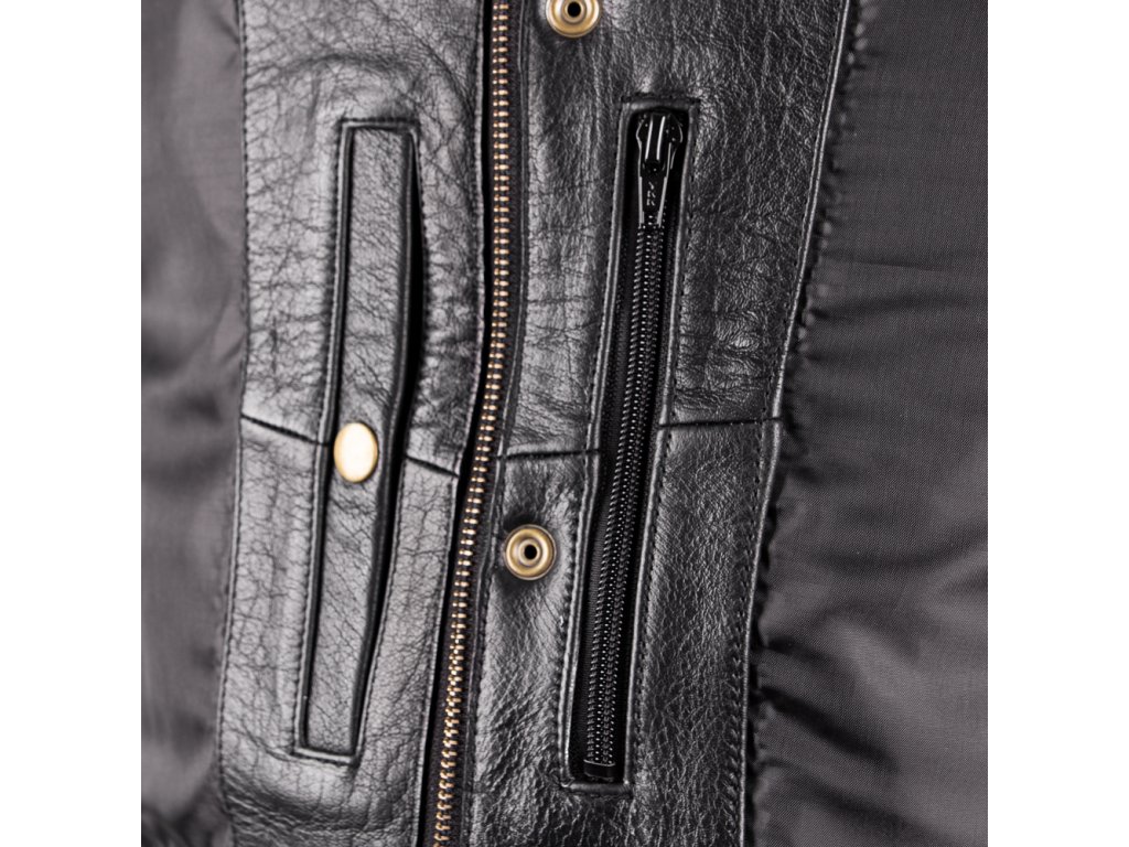 Kožená VESTA je atraktivní oblečení vhodné pro jízdu na motorkách, ale také na běžné nošení. Celá stylovost je zvýrazněna velkým embosovaným motivem na zádech . Vesta jako taková se zapíná pomocí zipu a druků.