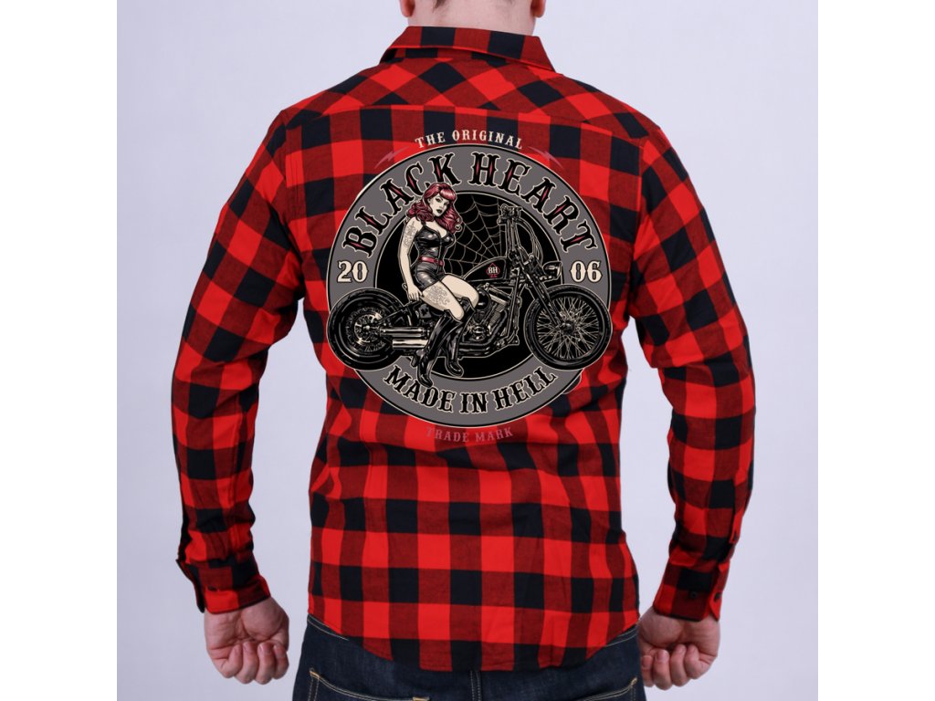 Košile BLACK HEART CHOPPER PUSSY s dlouhým rukávem je ta správná "chlapácká" košile a je perfektní volbou pro volný čas. Kvalitní bavlněná látka Vám poskytne maximální komfort při nošení. Skvěle se hodí k volnočasovým kalhotám a jeansům. Tahle košile není žádná "naškrobená nuda"!